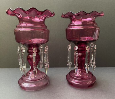 • Pair of Cranberry Victorian Mantle Lustres – circa 1880
