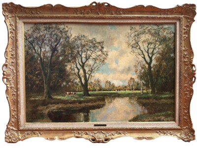 • Willem Hendriks (1888-1966) of The Netherlands, Dutch River Landscape, Large Oil Painting on Canvas