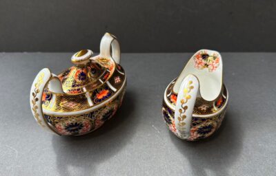 • Royal Crown Derby Old Imari Pattern 1128 – Cream & Covered Sugar – Dated 1916