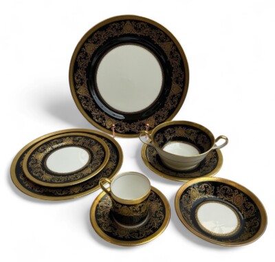 • Custom Order – Aynsley Imperial Onyx (Black) Dinner set for 12 + Serving Pieces – 102 Pieces Total