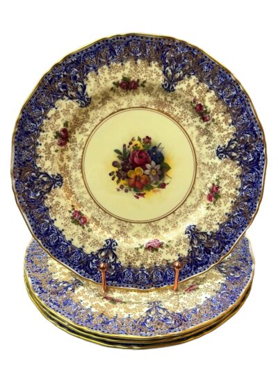 • Royal Worcester Hand Painted Floral Plates in Blue – Signed M. Hunt – Dated 1940. Each Sold Separately