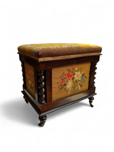 • Early Victorian Period Mahogany Storage Bench with Needlepoint Seat and Panels – circa 1850