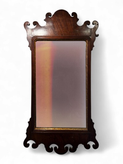 Beautiful Mahogany Queen Anne Style Mirror or Looking Glass with Carved Scrolled Frame, Late 19th Century