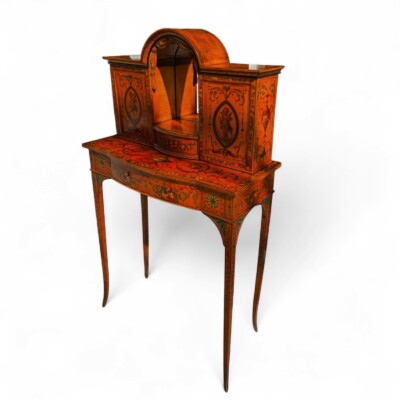 Exceptional & Rare English Edwardian Satinwood Handpainted “Bonheur Du Jour” Ladies Writing Desk Circa 1890s