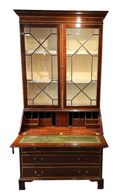 • Outstanding & Generous English Georgian Era Mahogany with Satinwood Inlay Bureau/Secretary Desk, Circa 1800