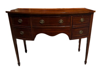 • Georgian Bow Front Buffet /Server, Mahogany with Satinwood Inlay & Brass Handles Circa 1800