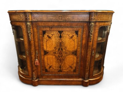 • English Mid-Victorian Burled Wood Credenza in the French Style with Bronze Hardware & Mounts – circa 1860