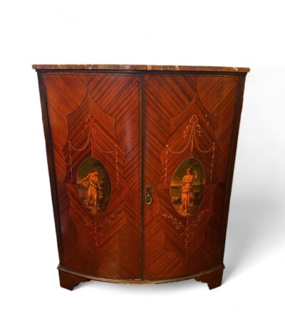 • English Georgian Double Door Display Cabinet in Satinwood & Hand Painted Florals circa 1790