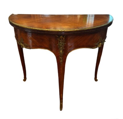 • 19th Century French Kingwood Demi-Lune Games Table with Gilt Bronze Mounts