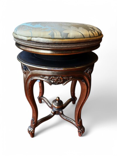 • Marvelous French Louis XV Style Carved Gilt Wood Adjustable Piano/Vanity Stool with Silk Upholstery