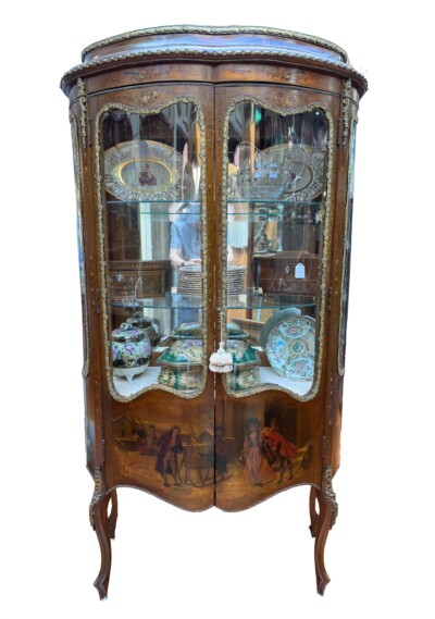 19th Century French Hand Painted Vernis Martin Double Door Display Cabinet.