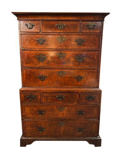 • Early 18th Century Walnut English Queen Anne Chest on Chest – circa 1710