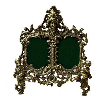 • Victorian Rococo Cherub Double Window Table Frame in Bronze Circa 1910
