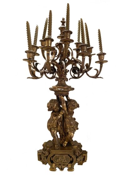 • Massive Gilt Bronze – Louis XV Style – Single Candelabrum with 2 Putti Figures – Early 19th Century