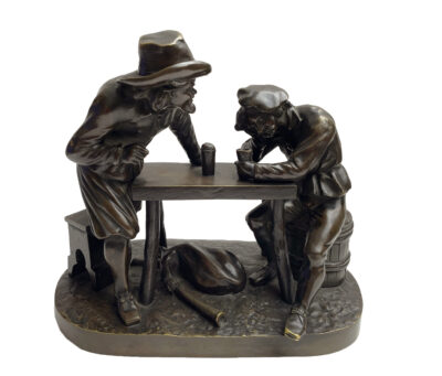 • French 19th Century Bronze Sculpture Depicting Two Men Drinking at a Table – by Pierre Eugene Emile Hebert (1828-1893)