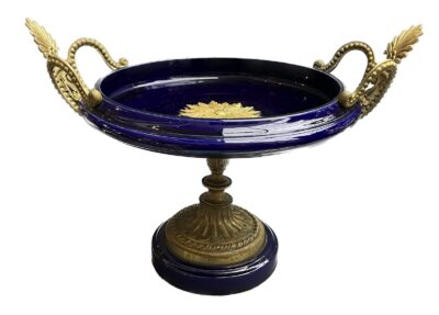 • 19th Century French Blue Porcelain and Ormolu Bronze Two-Handled Pedestal Tazza