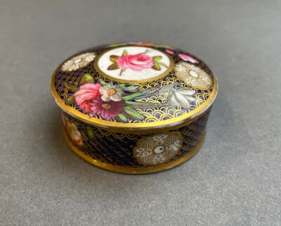 Colourfully Hand-painted Spode Pottery Round Trinket Box, c. 1790-1820