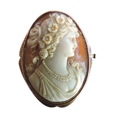 • Imperial Russian 14k Gold (583) & Finely Carved Shell Cameo – St Petersburg – circa 1900
