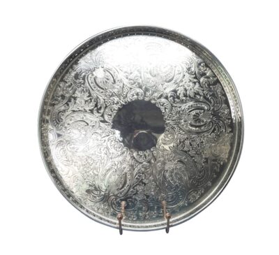 • English Silver-plate Gallery Tray with Beautiful Engraving and a Pierced Rim, c. 1930s