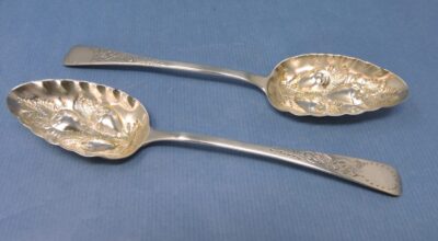• Pair of English Hallmarked (London 1819) Sterling Silver Serving Berry Spoons – “Geo III” Pattern.