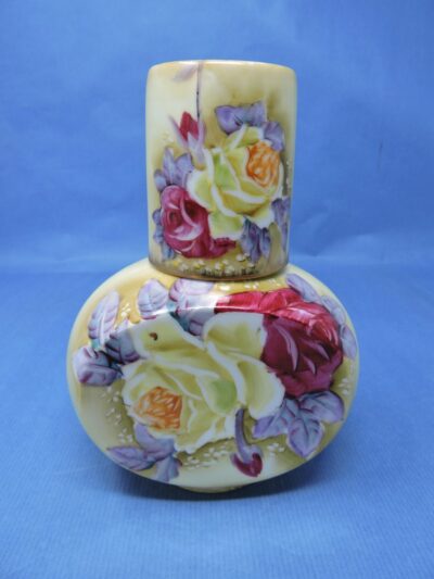 • Hand-Painted Nippon Japan Porcelain Drink Set (Decanter and Cup) Decorated with Roses, Rosebuds and Leaves