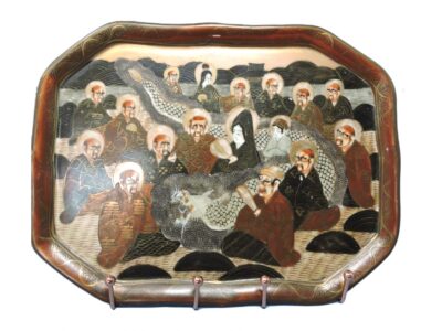 • Satsuma Japan Painted, Enamelled and Gilt Porcelain Rectangular Tray, Figural and Dragon Decoration
