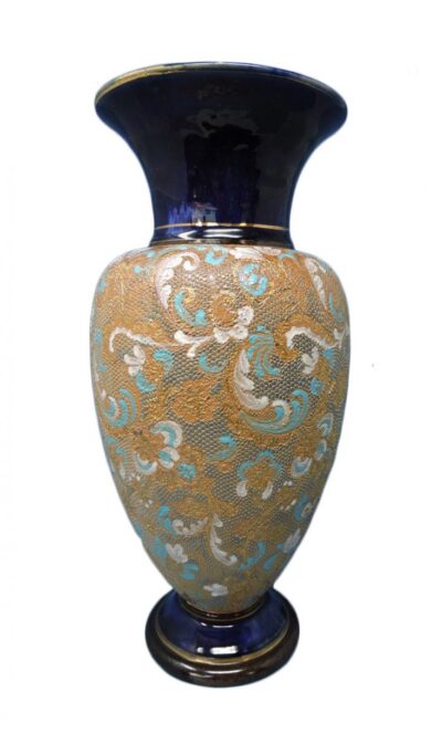 • Large Doulton Lambeth England Pottery Vase with Painted & Colourful Enamel Body – 14 inches – c. 1890