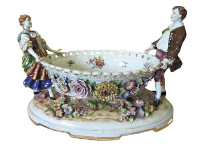 • Large Dresden Germany Porcelain Centrepiece, c. 1900, Decorated with Figures and Flowers – ‘Von Schierholz Porzellan Manufaktur Plaue’
