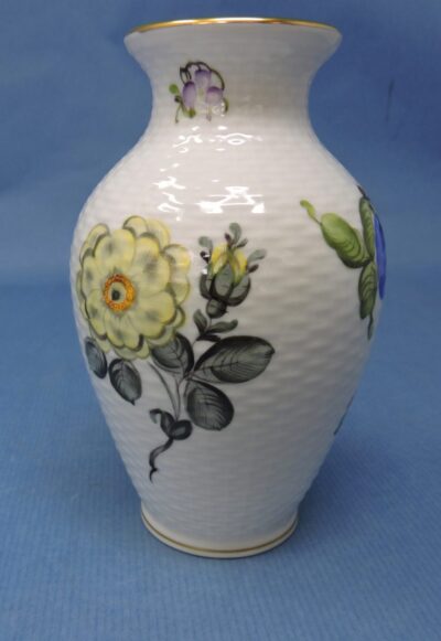 • Herend Hungary Porcelain Small Vase, Decorated with Flowers, Fruit and a Mushroom