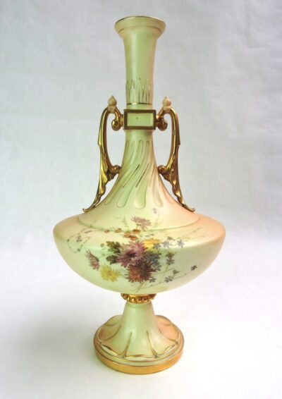 • Large Blush Ivory Royal Worcester Vase with Hand Painted Flowers 13 inches – dated 1893