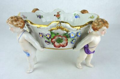 • Signed German Porcelain Open Bowl, c. 1900, of Putti and Flowers