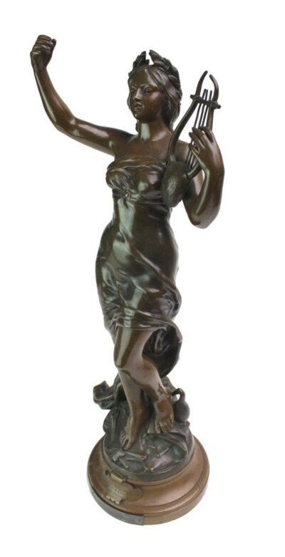 French, 24 inch High Bronze ‘Triomphe des Arts’ – Statue of a Woman with Lyre – Signed ‘A. Gaudez’.