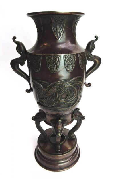 Japanese Decorated Bronze Urn, c. 1850-1860, on Attached Stand