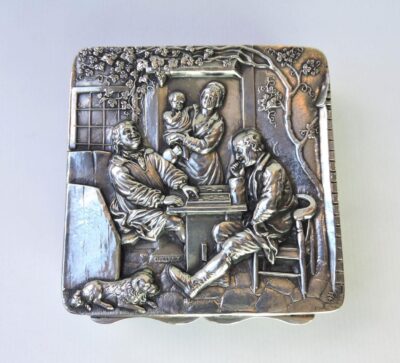 Sterling Silver English Hallmarked Square Repousse Box w/ Hinged Lid – dated 1900