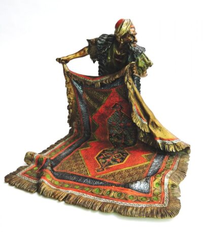 19th Century Franz Bergman Austrian Cold-Painted Orientalist Bronze of Carpet Seller.