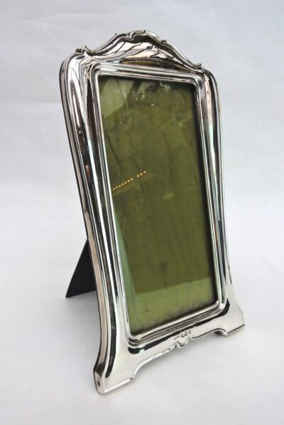 English Hallmarked Sterling Silver Photo Frame with Ebony Wood Backing and Green Silk Interior – Birmingham, 1912.