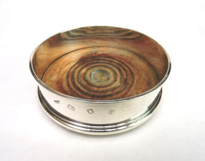 English Hallmarked Sterling Coaster with Turned Wood Base – dated 1971