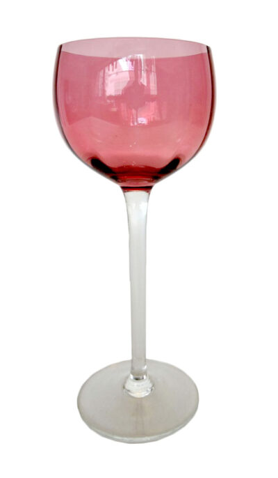 Cranberry and Clear Glass Stemmed Wine glasses – Sold Separately.
