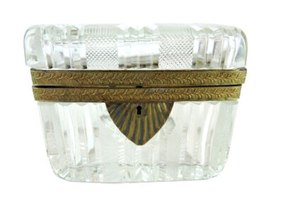 French Art Deco Baccarat Style Crystal Box – Bronze Trim & Key – circa 1920