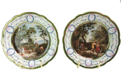2 Sevres Style Porcelain Plates – Salvator Rosa Transfer Neo-Classical Scenes