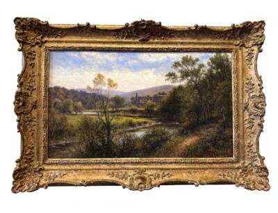 Alfred A. Glendening Sr. British (1840-1921) Oil on Canvas ” Stepping Stones Stones on the Wharf Near Bolton Abbey” – dated 1891