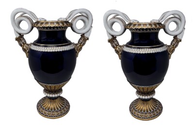 • Rare Large Pair of Meissen Empire-Style Porcelain Snake Handle Vases 19th Century