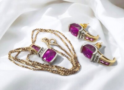 Pink Tourmaline/ Diamond Earrings & Pendant Trio Set in 10K White/Yellow Gold