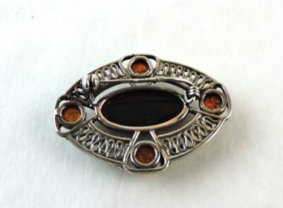 Celtic Design Sterling Silver and Amber Brooch