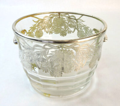 Crystal Ice Bucket with Sterling Silver Overlay of Flowers and Vines