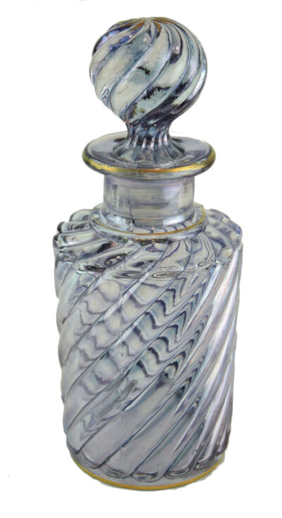 Baccarat France Crystal Perfume Bottle in Pale Blue / Lavender and Gold, Swirl Pattern, c. 1900