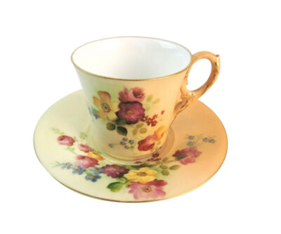 Royal Worcester Ivory Hand Painted Floral Cup and Saucer, Dated 1910