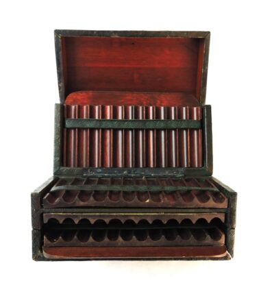 Vintage Italian Embossed Leather Cigarette Holder with Double-Hinged Wooden Interior Slots