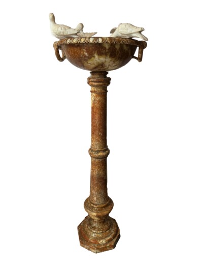 Italian Hand Carved Alabaster Bird Bath and Pedestal Bowl With Removable Birds