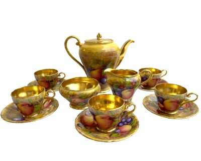 Aynsley Orchard Demi Tasse Set – 14 Pieces. Signed N. Brunt